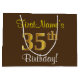 Elegant, Brown, Faux Gold 35th Birthday + Name Large Gift Bag