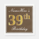 Elegant Brown, Faux Gold 39th Birthday + Name Napkin