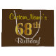 Elegant, Brown, Faux Gold 68th Birthday + Name Large Gift Bag