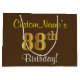 Elegant, Brown, Faux Gold 88th Birthday + Name Large Gift Bag