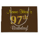 Elegant, Brown, Faux Gold 97th Birthday + Name Large Gift Bag