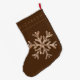 Elegant Brown Faux Gold Snowflake with Name Rustic Large Christmas Stocking