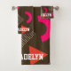 elegant brown orange white geometric abstract pattern personalized name bath towel set .