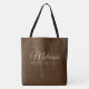 ...personalized with your own special name... over-sized script font style monogram... a nice and monogrammed brown tote-bag