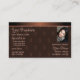 Make a lasting impression with this elegant business card design featuring shimmery brown gradient borders and monogram pattern on a dark brown background.
