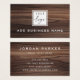 Elegant custom logo business cards with printed, brown wood grain texture.