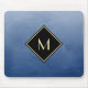 Capture attention with this elegant and stylish blue and black monogram mousepad. This simple and sophisticated brushed gradient design with a modern diamond shaped frame with a gold border can be personalized by adding your monogrammed initial. Flat printed image, NOT metallic.