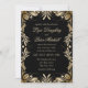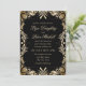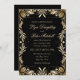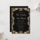 An elegant wedding invitation for evening weddings in any season of the year, this design features a brushed faux gold fancy border surrounding matching text against a black background. Add your wedding details in place of the sample text.