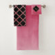 Nothing speaks elegance like this elegant and stylish pink and black monogram bath towel set. This simple and sophisticated brushed gradient design with a modern diamond-shaped frame with a gold border can be personalized by adding your monogrammed initial. Flat printed image, NOT metallic.
