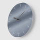 This elegant, customizable clock features a background design that replicates the look of brushed metal in a deep grey made to look like stainless steel. The hours are marked with light lines, but no numbers for a elegant, minimal look.