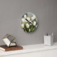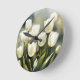 Elegant bunch of White Tulips in a Serene Garden Round Clock