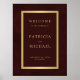 Modern classic jewel tone of deep burgundy and faux gold trendy minimal typography custom wedding welcome sign printable poster template on a vintage distressed-looking background. Suitable for a formal elegant classy autumn fall or winter wedding.