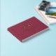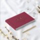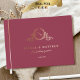 Personalize this elegant monogrammed wedding guestbook featuring real gold, silver, or rose gold foil on exquisite monogram and front, spine, and back text. Burgundy cover background colour in luxurious velvety-soft texture, and beautiful modern calligraphy details in a clean, minimal, and sleek style. Three size options with three inside paper-type choices. Personalize the guestbook with your monogram initials and wedding date on the front, your choice of text for the spine, and a smaller monogram with your initials on the back and one text section for your date, any other message you like, or if you prefer the design without this section, leave the corresponding template text box in blank to delete. Part of our Burgundy monogram wedding collection with many coordinating products available.