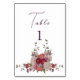 Elegant Burgundy Forest Flowers Wedding Table Number