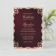 This elegant, simple, and modern wedding invitation is perfect for a classy and stylish event. It features a faux printed gold foil ornate wavey border on top of a brushed metallic dark burgundy red background. It's a chic, luxe, and unique minimalist design; the perfect choice for your special day.