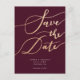 Elegant Burgundy Gold Script Wedding Save the Date Announcement Postcard