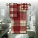 Elegant Burgundy Ivory Rust Red Plaid Pattern Bath Towel Set