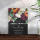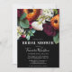 This elegant dark moody jewel tone burgundy, wine, orange, and blush floral bridal shower invitation features feature a rich set of flower graphics, including roses, ranunculus, dahlias, snapdragons, and other flowers in burgundy, orange, blush, and white on a black background, and elegant hand lettered script calligraphy. Easy to personalize with your own information, and the background colour is also customizable. These cards are perfect for the bride planning a boho wedding, garden wedding, vintage wedding, romantic wedding, floral wedding, or for any bride who loves jewel tones and flowers. Easy to personalize with your own information, and the background colour is also customizable. Design by T.K. Goforth.