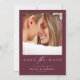 The Elegant Burgundy Photo Wedding Save The Date features a chic, minimalist design that beautifully showcases your favourite photo against a rich burgundy backdrop, paired with stylish calligraphy. Its simple yet modern aesthetic offers a touch of boho charm, and it's fully editable to match your vision—feel free to reach out if you need any assistance!