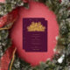 This beautifully crafted wedding invitation features a rich burgundy background complemented by a luxurious gold foil mandala design at the top. The intricate mandala pattern exudes a sense of tradition and elegance, perfect for a couple looking to infuse their special day with a touch of sophistication and cultural beauty. The invitation card uses a deep shade of maroon as its base, providing a sumptuous canvas for the shimmering gold foil details. An aura of celebration is encapsulated within the delicate filigree of the mandala, which is reminiscent of lace but with a more exotic flair. The typography is tastefully chosen to match the grandeur of the occasion, ensuring that your guests will feel the anticipation of the joyous event from the moment they receive your invite.