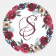 Make this gorgeous envelope seal your signature statement on the outside of your envelopes. The monogram is written in a burgundy flowing script with lots of swirls. It is surrounded by burgundy red flowers that are accented with lighter teal blue and creamy pink buds. The wreath is filled out with a variety of blue and green leaves. The lighter shades that are incorporated into this floral design make it appropriate to use throughout the year. It would look lovely on thank you notes, wedding invitations and cards.