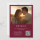 Elegant Burgundy Red Floral Photo QR Code Wedding Invitation