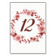 These wedding table numbers feature a watercolor burgundy rose wreath design. The front and back of the cards have the same design. To order, enter your table number and click "Add to Cart" for each table number. These cards are part of a collection which includes a full range of matching wedding stationery and bridal products. Please visit the collection pages in our store to see the full range.