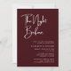 Elegant Burgundy The Night Before Rehearsal Dinner Invitation is designed to set the tone for an intimate and meaningful gathering before your wedding day. The rich burgundy color creates a warm and sophisticated atmosphere, perfectly reflecting the closeness and excitement of the evening shared with family and friends. Its clean, refined layout keeps the details clear while maintaining a timeless elegance that feels welcoming rather than formal. Thoughtfully selected typography and balanced spacing ensure your invitation feels polished and personal, making guests feel truly included in this special moment. Ideal for couples who want their rehearsal dinner to feel just as thoughtfully planned as their wedding, this invitation turns a simple announcement into a beautiful keepsake that celebrates the start of your wedding festivities.