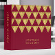 Elegant burgundy binder that you can personalize with your name featuring faux gold foil triangle pattern. Great for office or school.