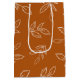 Elegant Burnt Orange Minimal Leaves Pattern Medium Gift Bag