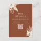 Modern wedding enclosure cards with elegant boho fall floral accents, minimalist typography design on burnt orange terracotta colour. Features custom QR code for your wedding website or other information.