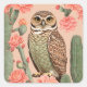 Elegant Burrowing Owl And Cactuses Square Sticker