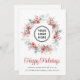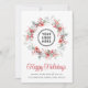 Corporate Christmas greeting card for your business or organization featuring your company logo within a watercolor wreath of red florals, berries and seasonal greenery, and "Happy Holidays" in an elegant red script. Personalize your greeting and company name in simple modern typography. On the back, add an additional message of customer appreciation and input your website address to create a QR code that customers can scan to connect to your online platforms.