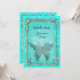 This invitation will help you celebrate your 15th birthday in style and sophistication. The design features a beautiful turquoise green with a diamond with silver and a fancy sophisticated elegance font.