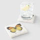 Elegant stone coaster with digital graphics of a orange, black, and yellow butterfly. Black script text reads whatever you want it to say. Makes a lovely gift idea.