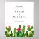 This lovely wedding welcome sign features a border of vibrant watercolor cacti and elegant typography. This design coordinates with our Elegant Cactus Garden wedding invitation suite. See the collection for coordinating items in this design!