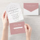 Elegant Calligraphy Dusty Pink Monogram Wedding All in One Invitation