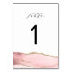watercolor blush and gold watercolor agate. Table number card with modern calligraphy.