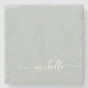 Elegant Chic Modern Sage Green Monogram Name Signature Script Custom Personalized Stone Coaster. This design featuring custom name in a cursive hand lettered swash tail font calligraphy (or typography) on sage green or dusty green background. These are easy to customize it. Great stylish feminine housewarming gift, also for birthday, wedding, sweet 16 birthday party, bridal shower, mother’s day and It’s for the girl who loves unique stylish things.