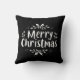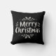 Modern Merry Christmas script throw pillow. The design features the text "Merry Christmas" in white typography with white holly berries and swirl accent elements. Makes for the best personalized gift for yourself, your friends, family members and even neighbours. We have 35+ more Christmas pillows in our collection that you will definitely love. Please check it out and get the best Christmas gift with special wishes for your special people. Merry Christmas!