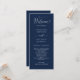 Welcome your guests with this elegant wedding program with delicate calligraphy details. Design in an attractive navy blue background colour and text in white. Add your own details using the template text boxes. If adjustments are needed, use the "Edit Using Design Tool" button at the end of the template text boxes and make text size, positioning, or style changes on the editor tool to fit your details best.