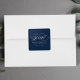 Elegant graduation stickers featuring "Grad" in white calligraphy script with the graduate's name, school, and graduation year displayed below. The navy graduation stickers are perfect for sealing envelopes, favor bags, etc.