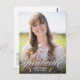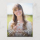 This elegant graduation postcard features pretty white calligraphy and a large photo. The white script lettering along the bottom reads "Graduate" in lowercase letters decorated with elegant flourishes. Add the graduate's name and graduation year to the front below the typography design. On the back of the grad postcard you can add a message to recipients and/or graduation party information.