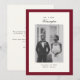 Announce your wedding in style with our Elegant Calligraphy Photo Frame Dark Red Wedding Announcement. This modern yet sophisticated design features your family name in elegant calligraphy, beautifully complementing the red and cream white colour palette. A photo template on the front lets you showcase a favourite wedding moment, while the back includes space for a custom message. Fully customizable, this announcement is a timeless way to share your special news with loved ones!