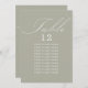 Sage Green wedding table seating card with elegant calligraphy and editable typography. Simple, modern minimalist design to suit your wedding colours. Table is lettered in handwritten script and the template is ready for you to edit the table number and your guest seating list.