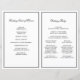 Create a customized folded wedding program using this template design featuring lovely calligraphy script text highlighting the front of the program with special text template to personalize with your detailed information. Please note, this item is printed on flat paper that you will need to fold. You can add or remove lines of text as needed to accommodate your desired text. Edit the text template with your details, then choose "click to customize further" to move text as needed or make further edits.