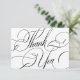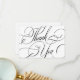 Classic romantic handwritten calligraphy script wedding thank you card with pre-printed message template and signature.