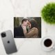 Stylish, elegant save the date postcards displaying your favourite horizontal engagement photo with "Save the Date" in a modern gold foil calligraphy script overlay. Personalize the front of the gold foil save the date card by adding your names, wedding date, and city/state. The back of the postcard features your return address, names, wedding date, wedding website, etc.