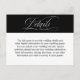 An elegant enclosure card to send with your wedding invitations, this details card has the title text in beautiful silver calligraphy over a contrasting black background with a text template for including important details for your wedding guests. Include any information you wish to convey to your guests, i.e. hotel information, driving directions, special events or gatherings during your wedding week, your wedding website or any other information you wish to provide to your guests. Enter your text in place of the sample text. If you need to re-position the text to centre it, or change the font/font size, choose "customize further". You can drag the text into the desired location to re-centre it.