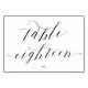 Simple Elegant Calligraphy Script Wedding or Dinner Party Table Number Eighteen written out in beautiful flowing fancy letters. A stylish yet simple formal design in black and white or any background colour you choose. Just click the customize further link, shown under the text personalization area on the right, and choose your custom colour background. This sign poster template makes it fast and easy to create stunning additions to your wedding decor. Signs can be enlarged, there are many sizes to choose from, as well as options for custom framing and matting. Welcome to our wedding custom signage.
